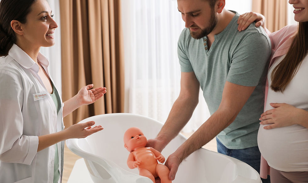 * The teachers of the program are teaching parents how to bathe newborn babies.